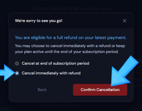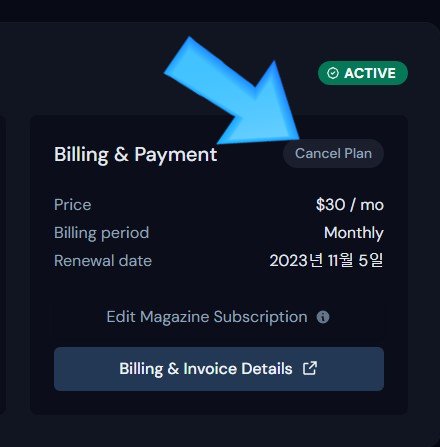 파란 화살표에 Cancel Plan 보이시나요? 여기입니다.