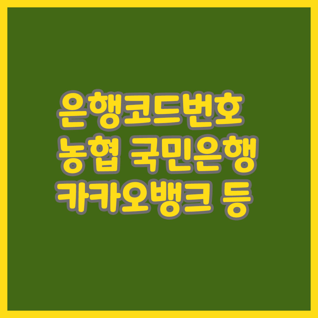 은행코드번호 농협, 국민은행, 기업은행, 카카오뱅크, 우체국 등