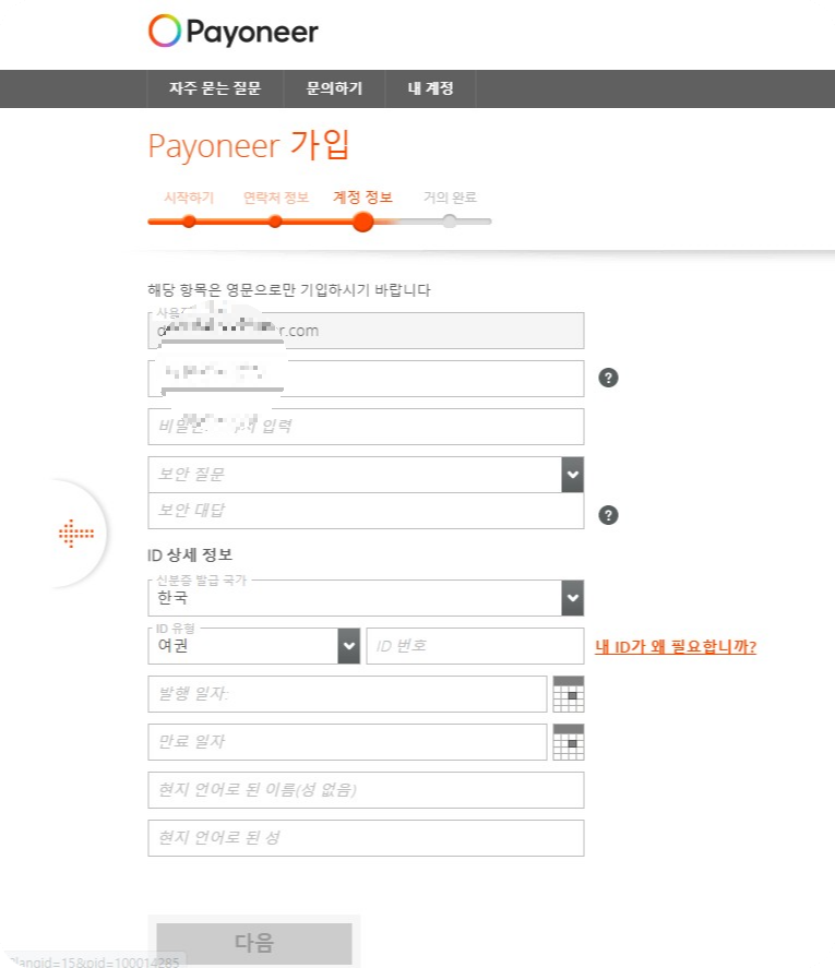 이렇게 모두 입력하면 페이오니아 가상계좌 가입 신청이 완료됩니다.